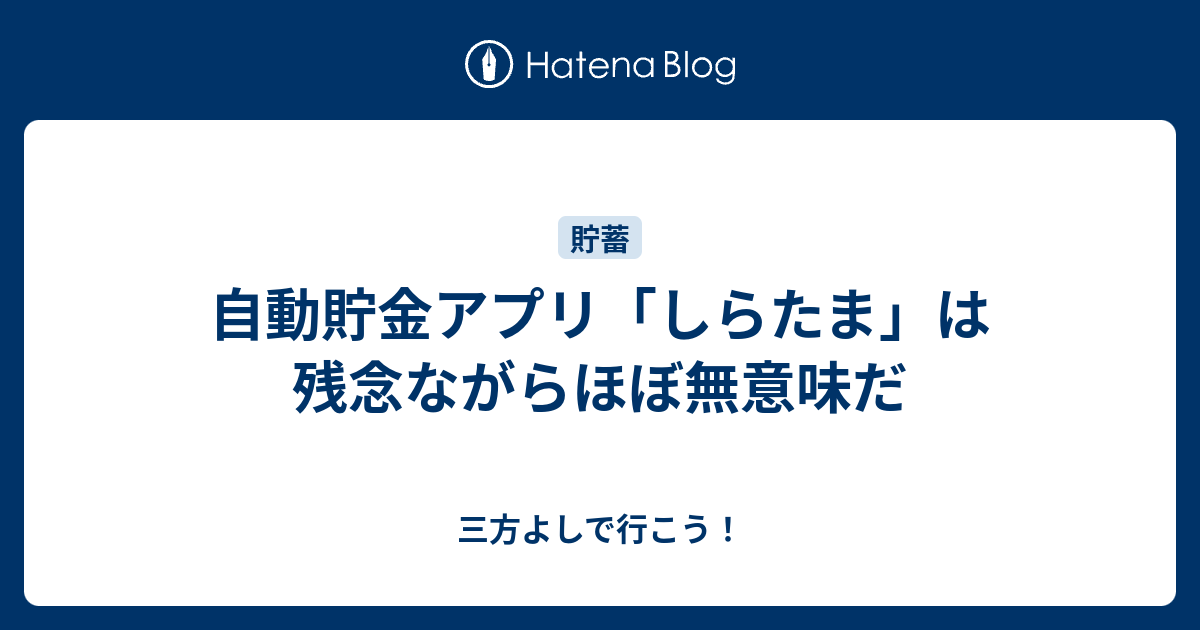 自動貯金アプリ しらたま は残念ながらほぼ無意味だ 三方よしで行こう